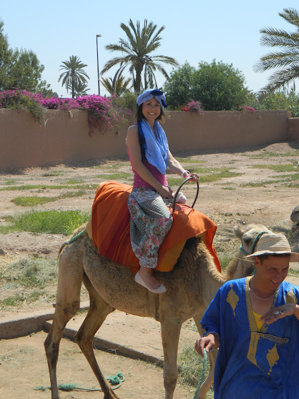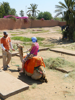Finishing at the palace, we moved to the next item on our list of things to do today. Ever since I had booked my ticket to Morocco over two months prior, I had this image in my head of me riding a camel through the Sahara Desert. Now, Alexis and I were in search of camels so that I could bring this dream to fruition. After negotiating with a cab driver, we drove out of the city walls of the medina to La Palmeraie. Here, we did not have to search for long until we found a group of gentlemen waiting with a small herd - if that is the correct word - of camels. As with all things in Marrakech, we negotiated a priced and were then suited up for our ride. I could not have been happier.